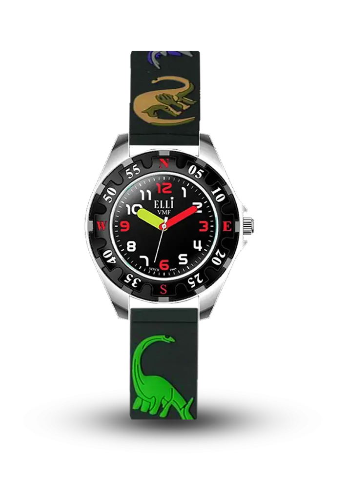 Kəmərindəki dinozavr fiqurları ilə seçilən bu saat uşaqlar üçün həm maraqlı, həm də diqqətçəkən aksessuardır. Kontrast rəngli siferblatı və aydın rəqəmləri sayəsində vaxtı oxumaq asanlaşır. Dinamik dizaynı uşaqların gündəlik istifadəsini daha əyləncəli edir və aktiv həyat tərzinə uyğun seçim yaradır.