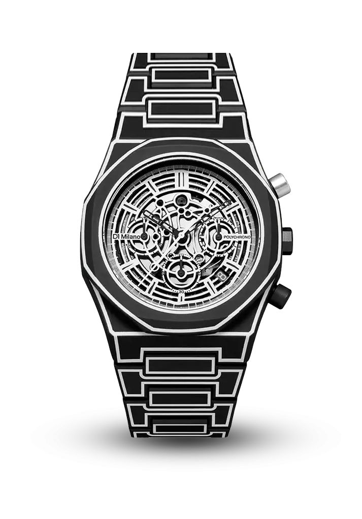 Onun qara polikarbonat korpusu ağ eskiz xətləri ilə bəzədilmişdir ki, sanki saat bir dizaynerin eskiz dəftərinə çəkilmiş kimi görünür. Skeleton siferblat mexanizmin iç dünyasını göstərir və hərəkətli sub‑siferlər vaxtın ritmini sənətkarlıqla ifadə edir. Bu saat gündəlik tərzə dinamika və modernlik qatır, minimalist və funksional elementləri bir araya gətirərək sənin stilinə bədii toxunuş əlavə edir.