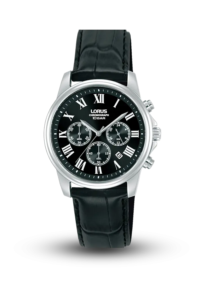 Klassik zərifliyi güclü funksionallıqla birləşdirən kişi saatıdır. Qara sunray siferblat və Roma rəqəmləri modelə prestijli və ciddi görünüş verir. 42 mm ölçülü gümüşü polad korpus və 100 metr suya davamlılıq həm gündəlik, həm də rəsmi istifadə üçün uyğundur. Qara dəri kəmər saatın klassik xarakterini tamamlayır, xronoqraf və 24 saat funksiyası isə praktik üstünlük təqdim edir
