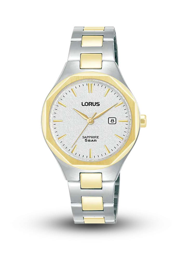 Zərif iki tonlu dizaynı ilə klassik və eleqant görünüş axtaran xanımlar üçün ideal seçimdir. Gümüşü-ağ siferblat və qızılı indekslər modelə incə və premium görüntü qazandırır. 32 mm ölçülü nazik korpus, cızılmaya davamlı safir şüşə və 5 BAR suya davamlılıq gündəlik istifadədə rahatlıq təmin edir. Gümüşü-qızılı polad qolbaq isə saatı həm rəsmi, həm də gündəlik kombinlərlə uyğunlaşdırır.