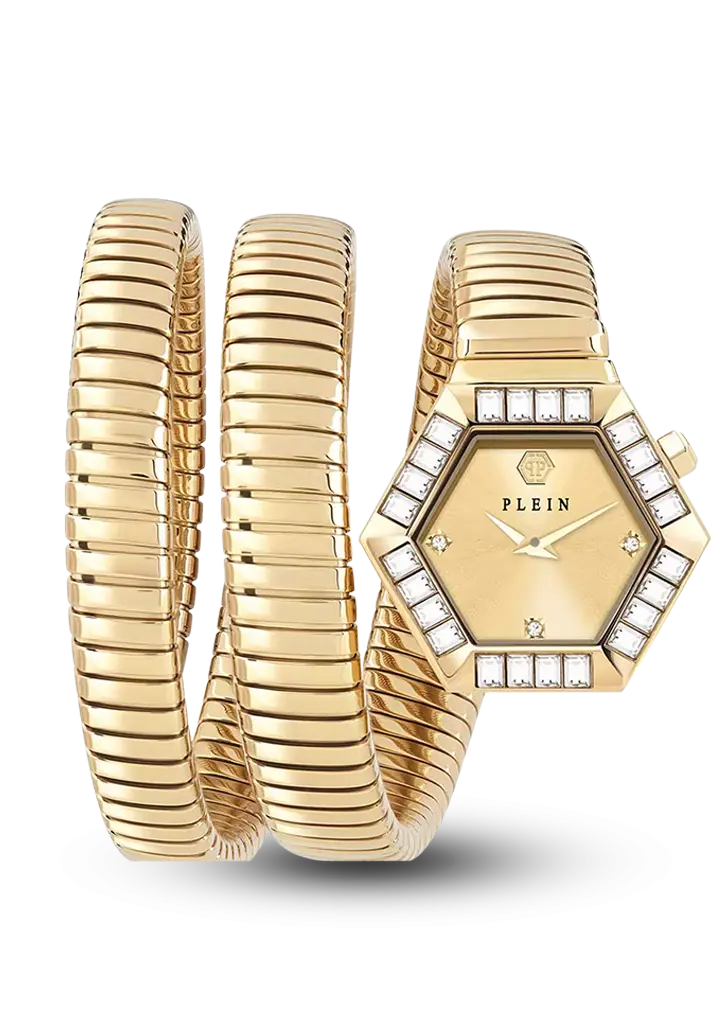 Snake Hexagon qadın saatı zinət əşyası incəliyi ilə saat ustalığını birləşdirən lüks dizayna malikdir. 28 mm ölçülü qızılı tonlu paslanmayan polad altıbucaqlı (hexagon) korpus qızılı altıbucaqlı siferblatı zərif şəkildə çərçivələyir. Baget kəsimli kristallarla bəzədilmiş bezel və qızılı zinət üslublu braslet saata eleqant və fərqləndirici görünüş qatır. İddialı üslubu sevən xanımlar üçün xüsusi aksesuardır.