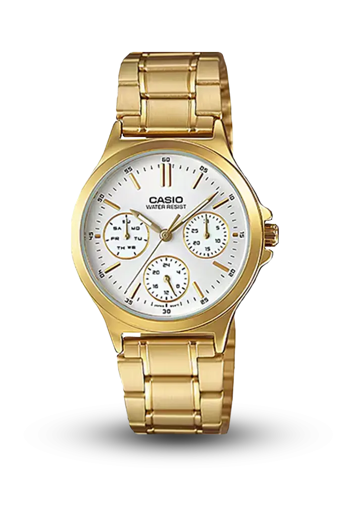 Saat həm praktik, həm də zərifdir: qızılı korpusu və qolbağı lüks bir parıltı verir, ağ kadranı isə bu parlaqlığı sakitləşdirir. Sub‑kadranlar əlavə funksionallıq gətirir, amma ümumi dizaynı sadə və oxunaqlıdır.