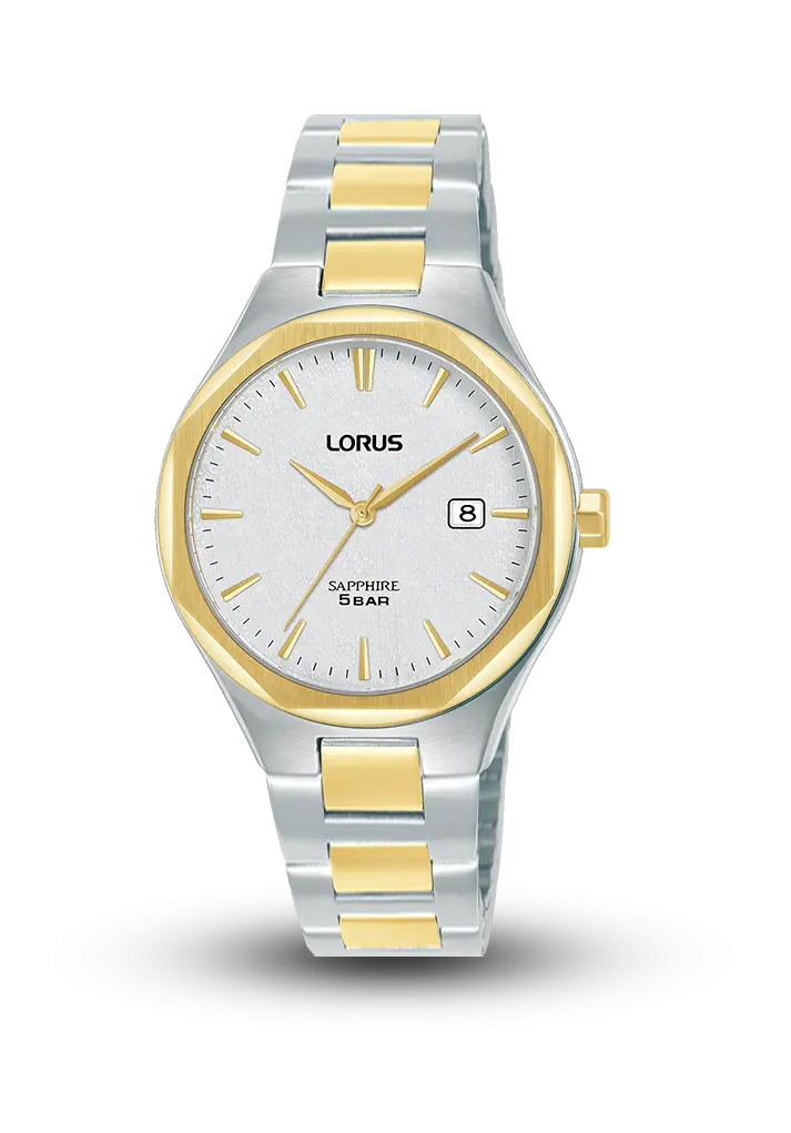 Klassik üslubu iki rəngli dizaynla birləşdirən zərif kişi modelidir. Gümüşü-ağ siferblat və qızılı bezel kombinasiyası saatın premium və balanslı görünüşünü vurğulayır. 42 mm ölçülü incə korpus, safir şüşə və 5 BAR suya davamlılıq modeli gündəlik istifadə üçün ideal seçimə çevirir. Tarix funksiyası isə praktik rahatlıq təmin edir.