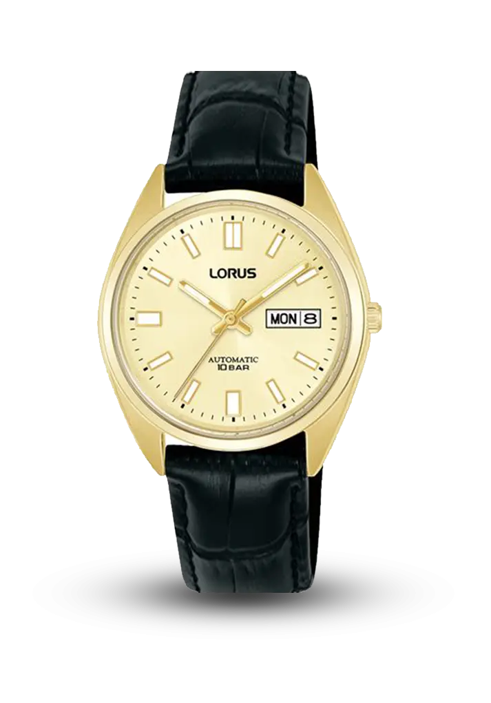 Klassik üslubu zərif qızılı korpus və açıq şampan tonlu siferblatla təqdim edir. Qara dəri kəmər modeli daha eleqant və rəsmi görünüşlə tamamlayır. Avtomatik mexanizm mexaniki saat həvəskarları üçün xüsusi üstünlükdür, şəffaf arxa qapaq isə mexanizmin işləmə prosesini izləməyə imkan verir. Rəsmi və klassik stil sevənlər üçün ideal seçimdir.