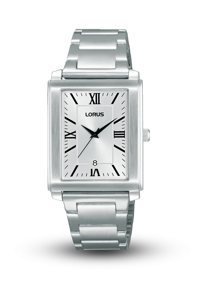 Klassik düzbucaqlı korpusu və ağ siferblatı ilə zərif və rəsmi üslubu tamamlayan kişi saatıdır. Roma rəqəmləri və qara əqrəblər modelə klassik Avropa estetikasını bəxş edir. 34 mm incə korpus və 8 mm qalınlıq sayəsində biləkdə rahat və yüngül hiss olunur. 5 BAR suya davamlılıq və tarix funksiyası gündəlik istifadə üçün praktik üstünlük yaradır. Rəsmi və biznes üslub üçün ideal seçimdir.