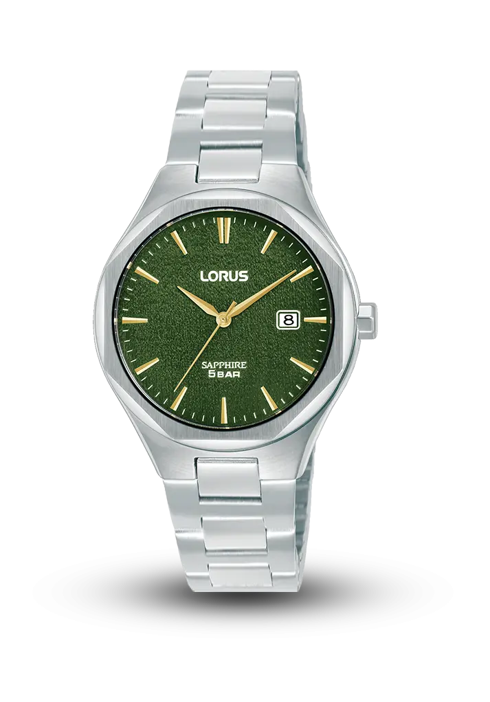 Klassik minimal dizaynı müasir yaşıl tonla birləşdirən zərif kişi modelidir. Tünd yaşıl siferblat və qızılı indekslər saatın premium və fərqli görünüşünü vurğulayır. 42 mm ölçülü incə korpus və safir şüşə modeli gündəlik istifadə üçün həm rahat, həm də davamlı edir. 5 BAR suya davamlılıq və tarix funksiyası praktik istifadə imkanı yaradır.
