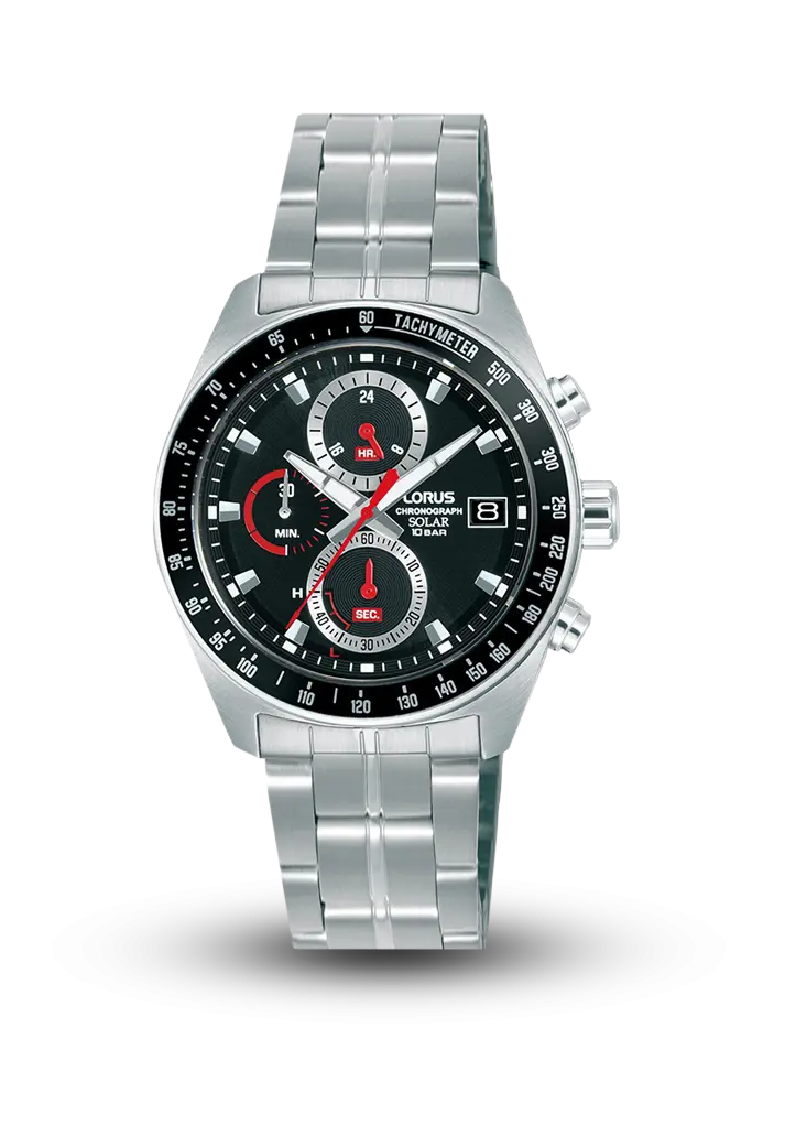 Dinamik dizaynı və yüksək funksionallığı ilə seçilən idman üslublu kişi saatıdır. Qara siferblat, qırmızı detallı alt göstəricilər və taximetr halqası modelə güclü və aktiv xarakter verir. Günəş enerjisi ilə işləyən mexanizm batareya dəyişməsinə ehtiyac yaratmır. 10 BAR suya davamlılıq isə üzgüçülük və gündəlik aktiv həyat üçün ideal seçimdir. İdman ruhunu və texnologiyanı birləşdirən funksional modeldir.