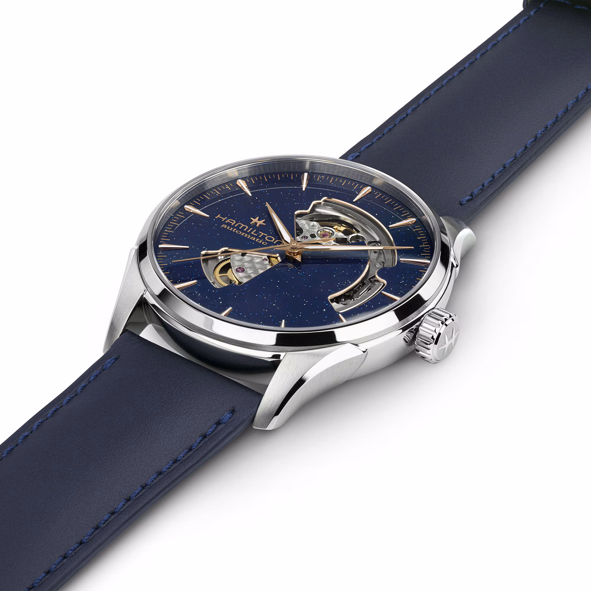 Jazzmaster Open Heart - daxili mexanizmini qismən göstərən, dəqiqlik və zərifliyi önə çıxaran saatdır. 42 mm-lik korpus və işıldayan mavi parlaq siferblat modeli həm müasir, həm də cəlbedici edir. Saat H-10 avtomatik mexanizmlə, 80 saatlıq enerji ehtiyatı və Nivachron™ balans spiralı ilə təchiz olunub. Mavi dəri kəmər isə, onun eleqant dizaynını tamamlayır.