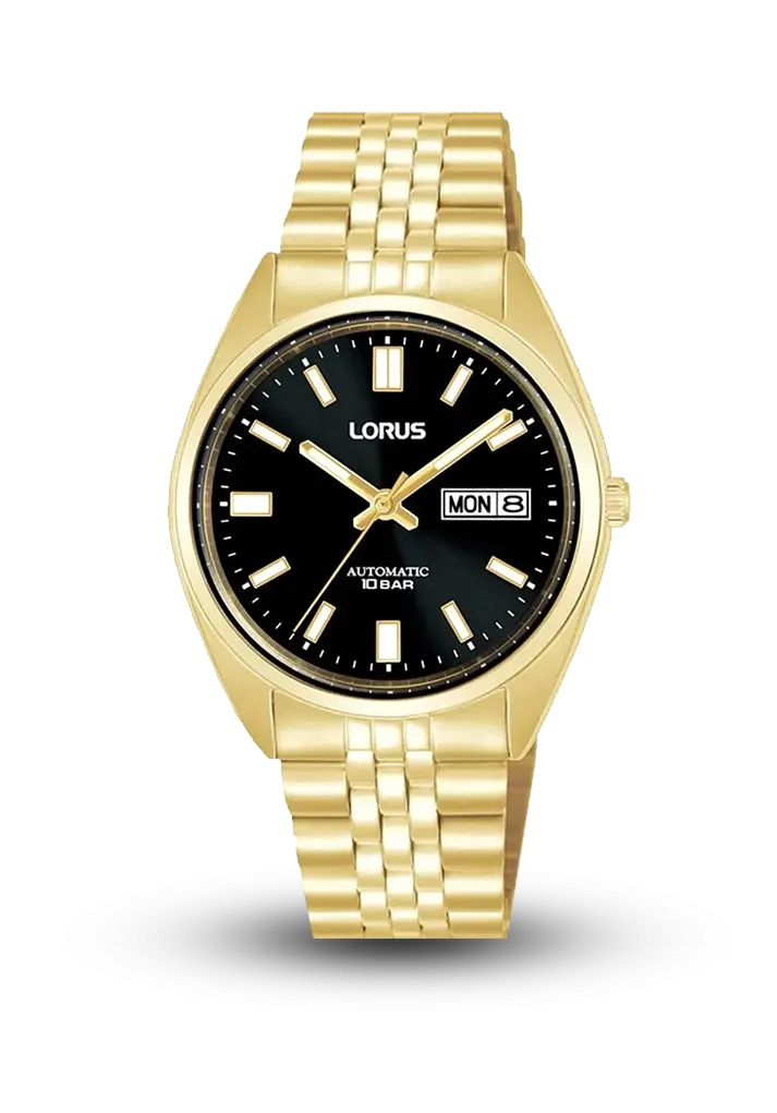 Klassik zəriflik və etibarlı texnologiyanı bir araya gətirən kişi qol saatı. Qızılı rəngli paslanmayan polad korpus və metal qolbaq modelə eleqant və premium görünüş qazandırır. Qara siferblat üzərində yerləşən gün və tarix göstəricisi funksionallığı artırır. Avtomatik mexanizmlə işləyən saat 10 bar suya davamlıdır və gündəlik istifadə ilə yanaşı işgüzar stil üçün də ideal seçimdir.