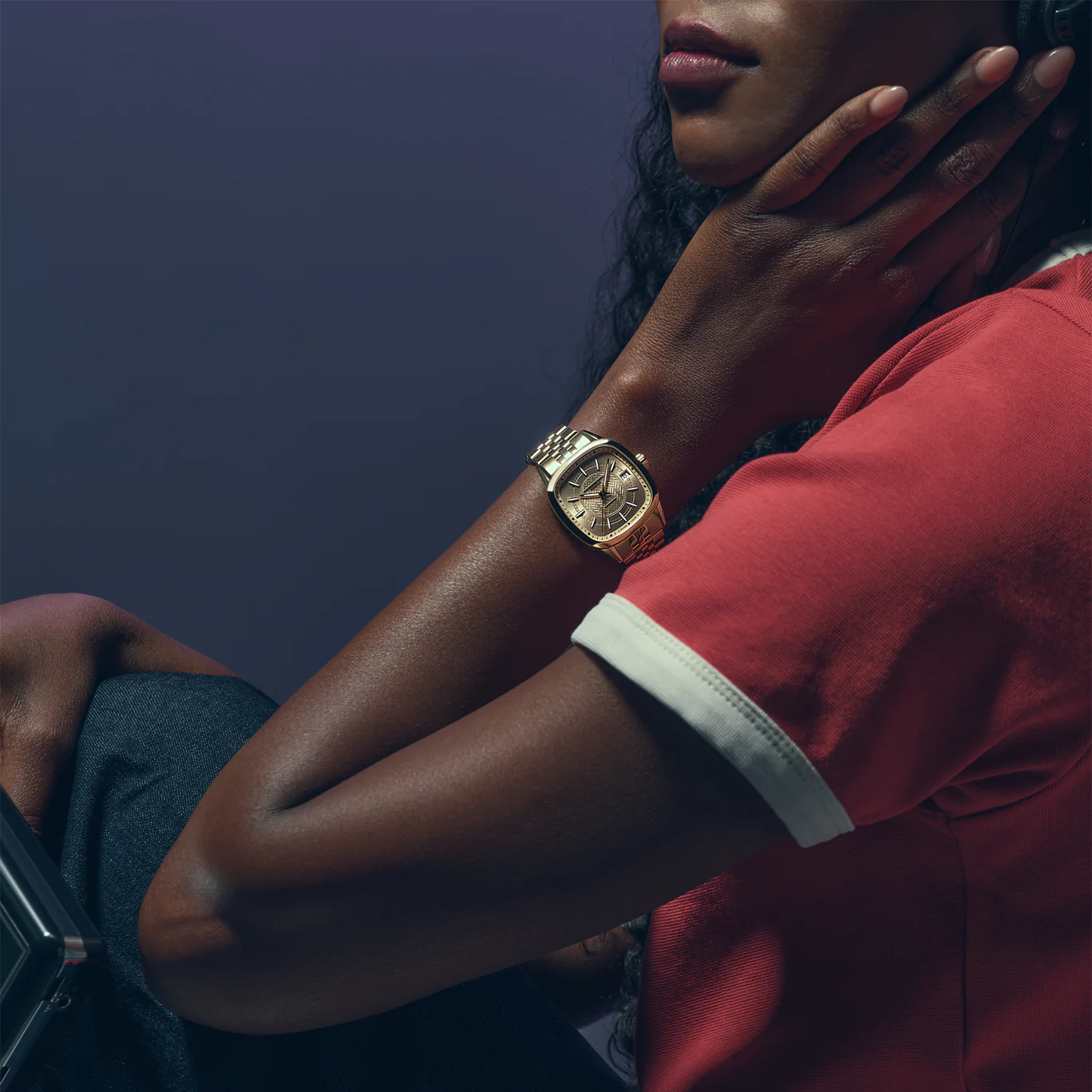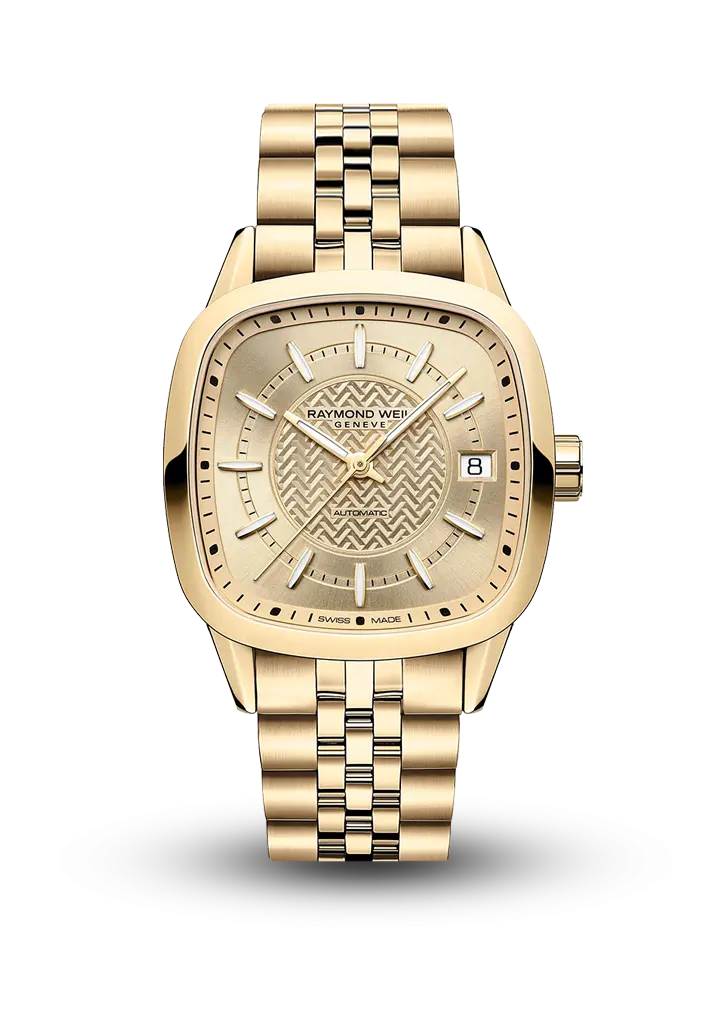 Raymond Weil Freelancer Automatic 34mm - Champagne Dial. Yeni Freelancer Automatic modeli - klassik form dizaynının müasir şərhi, 34x34 mm yastı formalı korpus və İsveçrə avtomatik mexanizmi (41 saat enerji ehtiyatı) ilə diqqət çəkir. Şampan rəngli siferblat, mərkəzdə “W” naxışı, luminescent əqrəblər və 3 mövqeyində tarix göstəricisi ilə zərif görünüş yaradır. Bu model - ənənə və müasir zərifliyin harmoniyasını təmsil edir