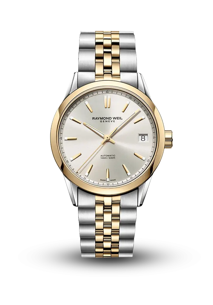 RW4420 mexaniki, avtomatik qurma mexanizmi və 41 saatlıq enerji ehtiyatı ilə təchiz edilmiş bu Freelancer saatı texniki dəqiqliyi incə estetik ilə birləşdirir. 40 mm-lik korpus paslanmayan poladdan hazırlanıb və sarı qızıl PVD örtüklə tamamlanıb. Daha əyri qolları və incə çərçivə xətləri sayəsində işığın daha yaxşı əks olunması və biləyə daha rahat oturuş təmin edilir.Günəş şüası effekti ilə işlənmiş krem rəngli siferblat dərinlik və işıq oyunu ilə zərif təsir yaradır. Ağ Super-LumiNova ilə vurğulanmış tətbiq edilmiş indekslər və incə əqrəblər oxunaqlılığı artırır, saat 3 mövqeyində yerləşən iri tarix göstəricisi isə dizayna müasir xarakter qatır. Daxili halqada yerləşdirilmiş zərif dəqiqə cizgiləri kompozisiyanı tamamlayır.İki tonlu qolbaq, iki düyməli qatlanan bağlama sistemi ilə həm rahatlıq, həm də etibarlılıq təmin edir.