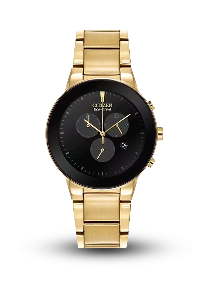 Zərif və müasir dizaynı ilə seçilən premium modeldir. Qızılı tonlu korpus və qolbağı, qara minimalist siferblatla mükəmməl harmoniya yaradır. Eco-Drive texnologiyası sayəsində işıqla işləyir və batareyaya ehtiyac duymur. Xronoqraf funksiyası, tarix göstəricisi və yüksək keyfiyyətli materialları bu modeli həm gündəlik istifadə, həm də klassik üslub üçün ideal seçim edir.