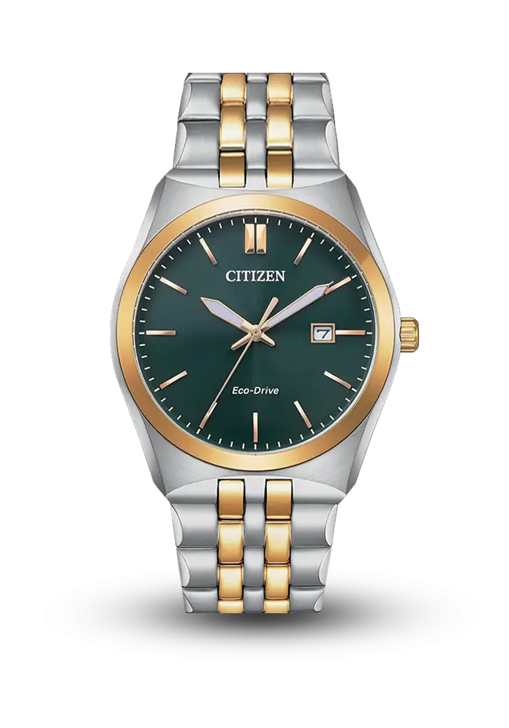 Yüngül və davamlı klassik qol saatıdır. İşıq enerjisini toplayır və batareya dəyişimi lazım deyil. Saatın yaşıl kadranı, qızılı və gümüşü iki tonlu qolbağı ona cazibədar görünüş verir. Bu model həm gündəlik, həm də daha ciddi tərz üçün mükəmməl seçimdir.