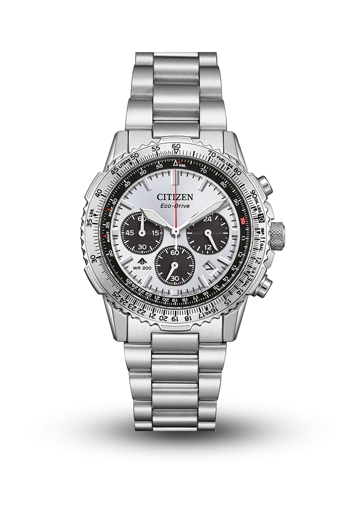 Citizen Promaster Sky seriyası 1989-cu ildən etibarən peşəkar idman və pilot saatları ilə tanınır. Bu model kompakt ölçülü pilot xronoqrafıdır və aviasiya üslubunu yüksək funksionallıqla birləşdirir. Saat Eco-Drive mexanizmi ilə işləyir (işıqla yüklənir, batareya tələb etmir), xronoqraf funksiyası, pilotlar üçün nəzərdə tutulmuş slide-rule bezel, güclü oxunaqlılıq üçün luminoforlu əqrəblər, safir şüşə, maqnitə davamlılıq (4800 A/m) və 200 metr suya davamlılıq xüsusiyyətlərinə malikdir. Pilot üslubunu sevənlər və aktiv həyat tərzi üçün hazırlanmış funksional, etibarlı və texnoloji bir saatdır.