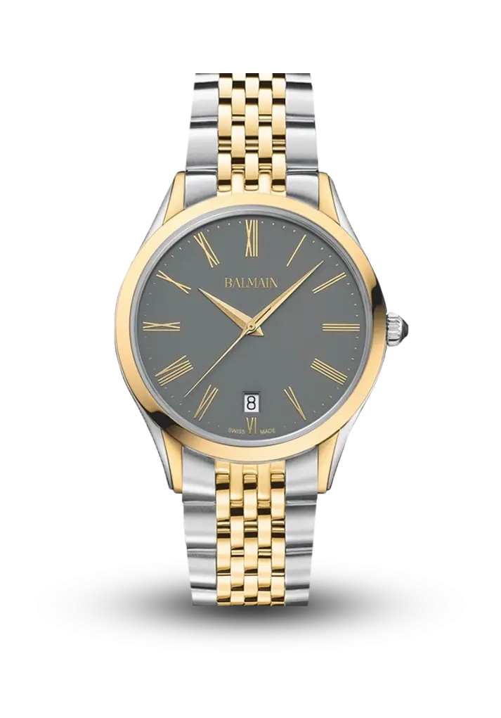 Balmain Classic R - Paris yüksək dəbindən (Haute Couture) ilham almış zərif və müasir dizaynlı kişi saatıdır. Boz siferblatı və müasir roma rəqəmləri ona canlı və incə bir zəriflik bəxş edir. 41 mm-lik ikirəngli paslanmayan polad və sarı qızıl PVD örtüklü korpus, 7.17 mm-lik incə profil və uyğun qolbaq sayəsində bu saat hər gün üçün eleqant və balanslı üslub təqdim edir.