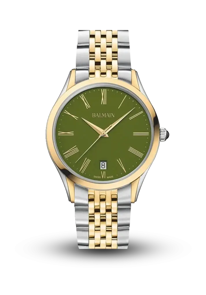 Balmain Classic R - Paris yüksək dəbindən (Haute Couture) ilham almış zərif və müasir dizaynlı kişi saatıdır. Xaki siferblatı və müasir roma rəqəmləri ona canlı və incə bir zəriflik bəxş edir. 41 mm-lik ikirəngli paslanmayan polad və sarı qızıl PVD örtüklü korpus, 7.17 mm-lik incə profil və uyğun qolbaq sayəsində bu saat hər gün üçün eleqant və balanslı üslub təqdim edir.