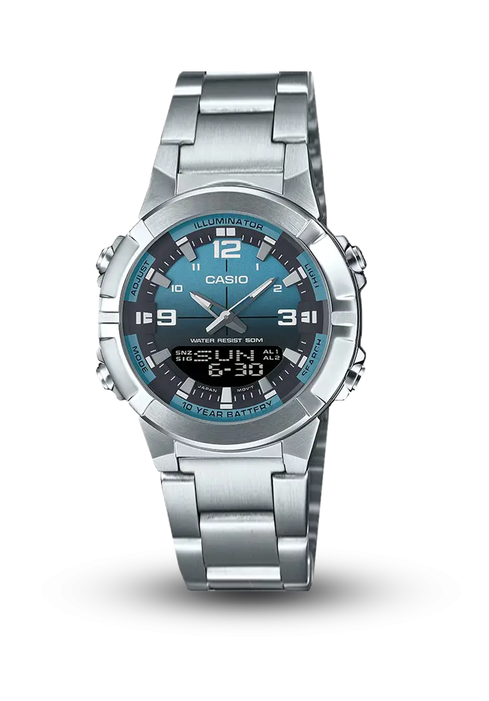 Sanki şəhərin işıqlı gecələrindən ilham almış bir saat kimidir — metal korpusun gümüşü tonu ilə siferblatın dərin mavi rəngi birləşərək həm müasir, həm də cəlbedici bir xarakter yaradır. Yuvarlaq polad gövdəsi şəhər ritmini xatırladır: möhkəm, dəqiq və özündən əmin.