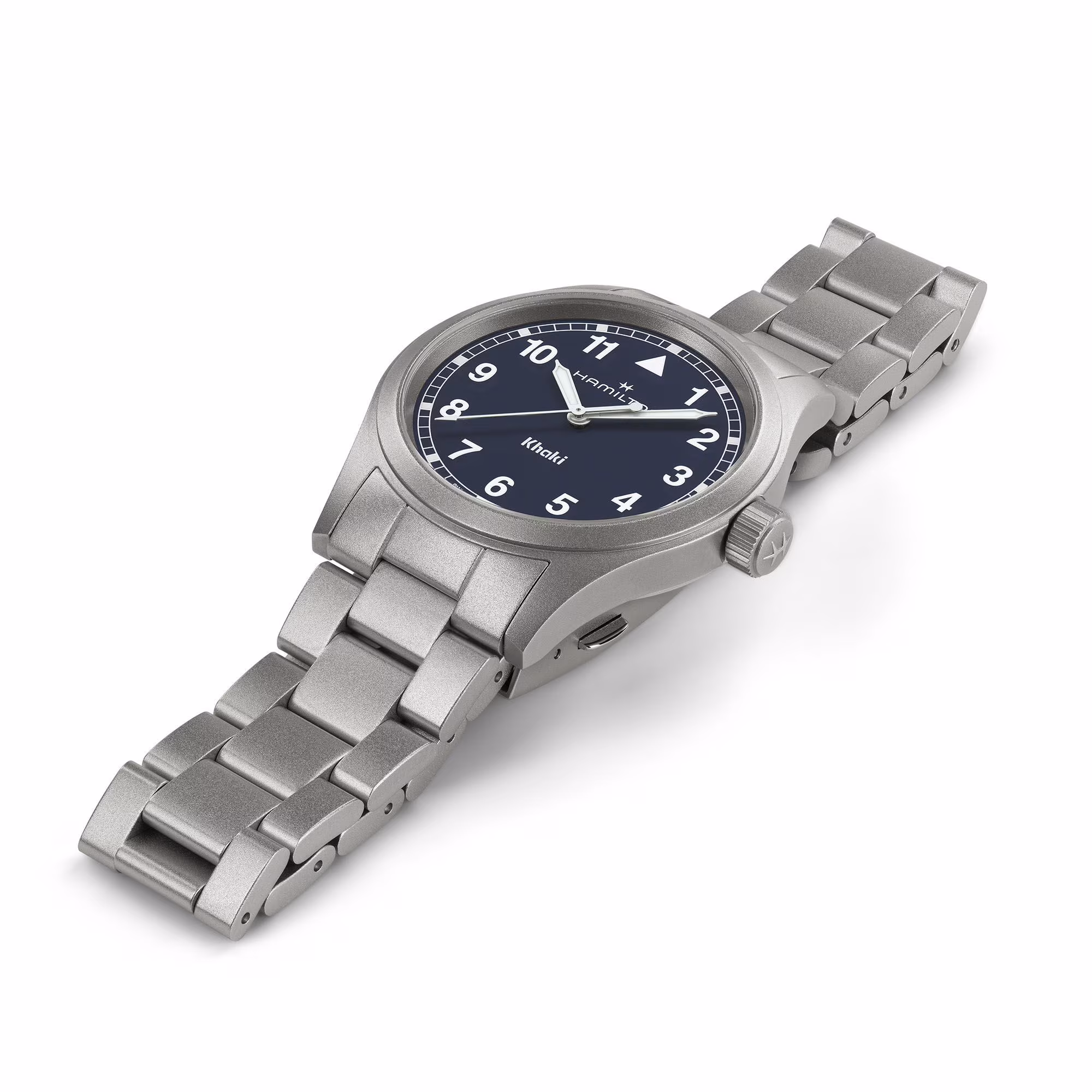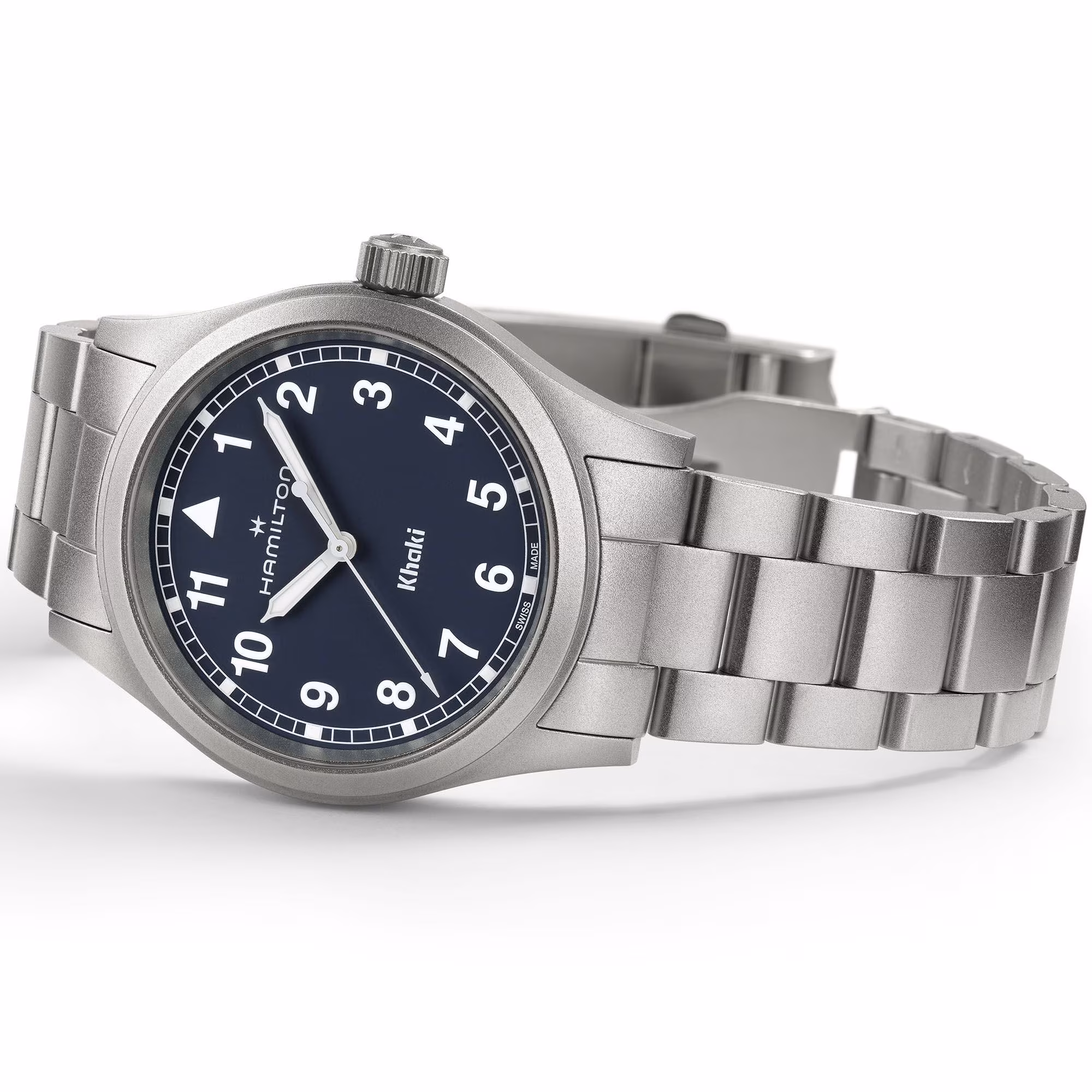 Hamilton Khaki Field Quartz (H69401140) – 38 mm paslanmayan polad korpusa və sapfir şüşəyə malik klassik sahə saatıdır. Etibarlı kvarts mexanizm ilə işləyir, 50 m suya davamlıdır və gündəlik istifadə üçün ideal seçimdir.