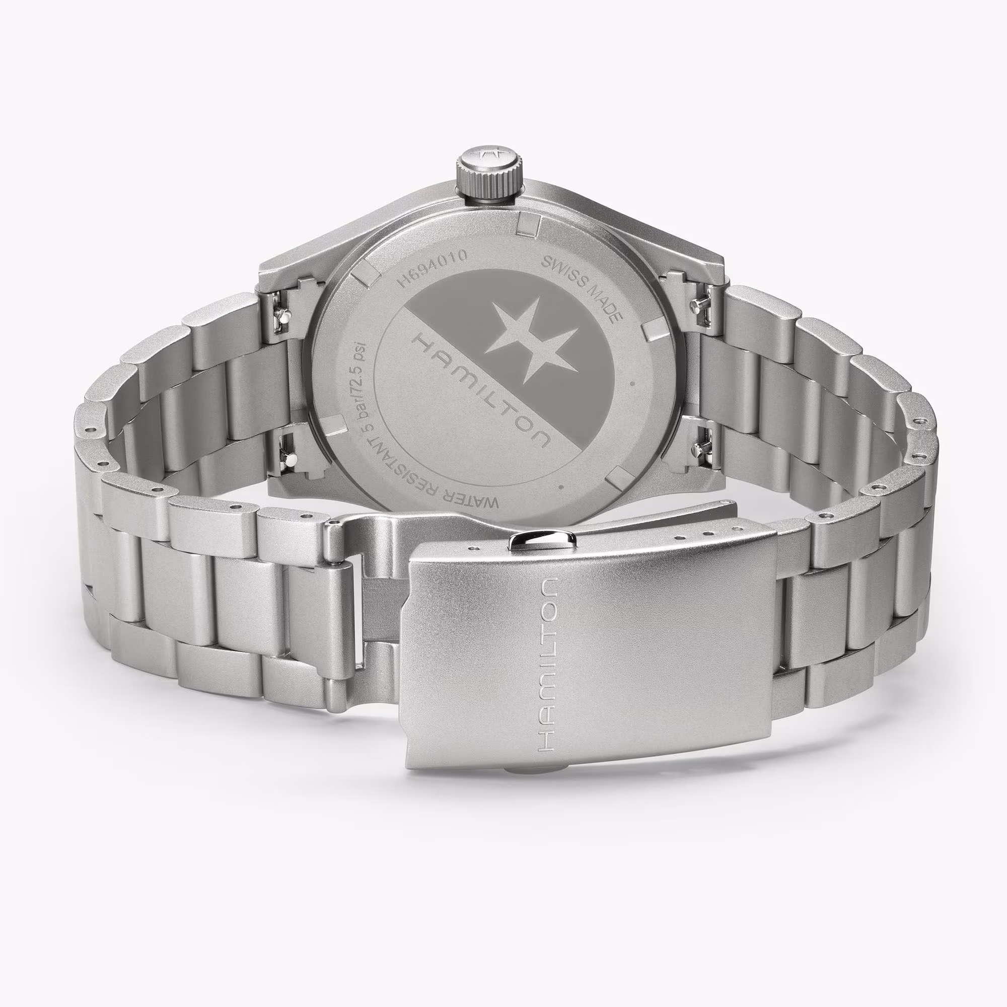 Macəra ruhu üçün yaradılmış Khaki Field Quartz, etibarlı və dözümlü yoldaş kimi hər an kəşf üçün hazırdır. Hamiltonun dəqiqlik, innovasiya və funksionallığa əsaslanan dizayn irsindən ilhamlanan bu modelin, 38 mm-lik xaki-yaşıl siferblatı müasir metal qolbaqla birləşdirir. Khaki Field kolleksiyasını kəşf edin. Sadelik, güc və orijinal hərbi ruhun mükəmməl vəhdəti.
