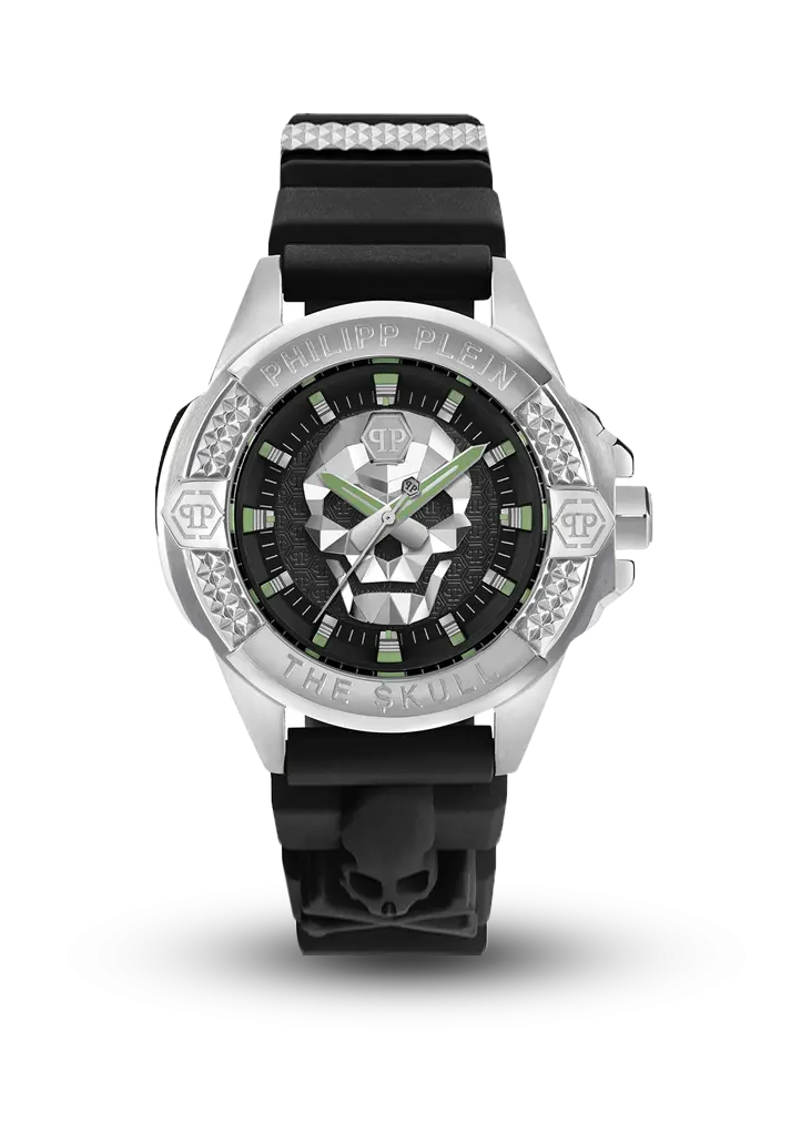 The Skull kişi saatı cəsarətli və güclü dizaynı ilə seçilir. Paslanmayan poladdan hazırlanmış korpus, siferblatda əfsanəvi kəllə (skull) motivi və yaşıl aksentli əqrəblər saata xarakterik, dinamik görünüş verir. Kvars mexanizmi dəqiq vaxt göstərişi təmin edir, silikon kəmər isə gündəlik istifadədə rahatlıq yaradır. Şəhər üslubu və İddialı görünüş sevənlər üçün ideal aksesuardır.