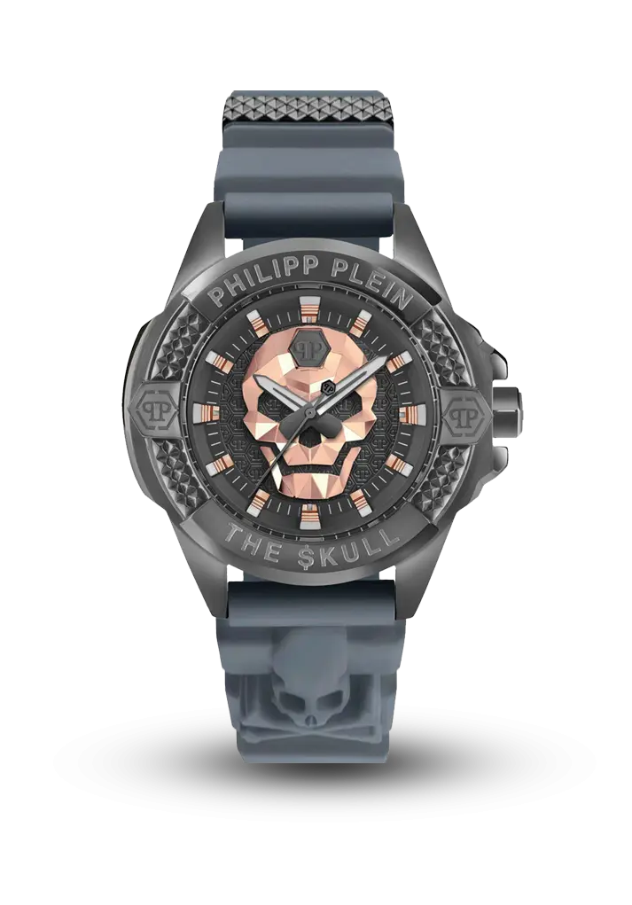 The Skull kişi saatı iddialı və güclü dizaynı ilə seçilir. 47 mm ölçülü boz rəngli paslanmayan polad korpus (parlaq–mat işləmə) biləkdə təsirli görünüş yaradır. Boz siferblat və LED örtüklü əqrəblər zəif işıqda belə rahat oxunuş təmin edir. Kvars mexanizmi saat, dəqiqə və saniyə funksiyalarını dəqiq göstərir. Mineral şüşə gündəlik istifadədə cızıqlara qarşı qoruma yaradır. 5 ATM suya davamlılıq sayəsində məişət istifadəsi və duş üçün uyğundur (üzgüçülük/dalma üçün deyil). Boz silikon kəmər rahatlıq və möhkəmliyi birləşdirir. İddialı üslubu sevənlər üçün ideal aksesuardır.