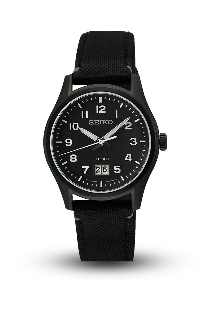 Seiko kişi saatı funksional və minimal dizaynı ilə seçilir. Qara siferblat, aydın ərəb rəqəmləri və 10 ATM suya davamlılıq modeli gündəlik və aktiv istifadə üçün ideal edir. Qara örtüklü korpus və möhkəm tekstil kəmər saata idman üslub qazandırır. Tarix göstəricisi isə praktikliyi tamamlayır.
