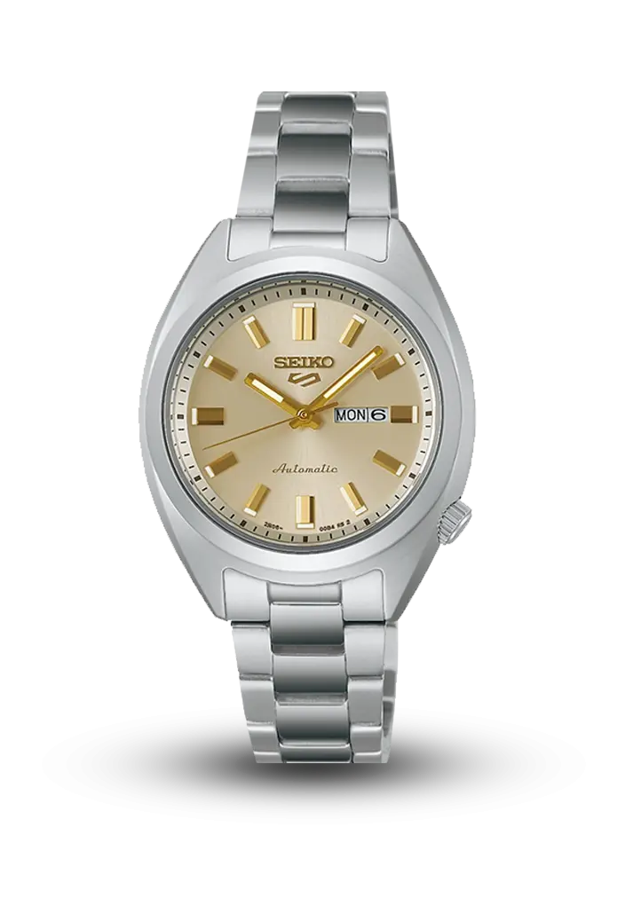 Seiko 5 Sports kolleksiyasının retro-zərifliyi ilə müasir funksionallığı birləşdirən "Hebitama" ləqəbli bu saat, kompakt 32 mm paslanmayan polad korpusu və şampan rəngli, günəş şüası effektli siferblatı ilə fərqlənir. Etibarlı avtomatik 2R06 kalibrli mexanizmə və 100 metr suya davamlılığa malikdir.