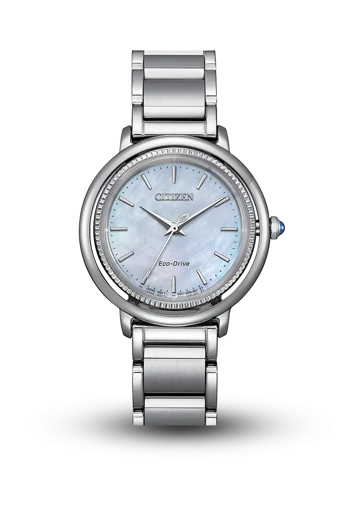 Zərif dizaynı və açıq mavi, mirvari effektli siferblatı ilə seçilir. Eco-Drive texnologiyası sayəsində günəş və işıq enerjisi ilə işləyir, batareyaya ehtiyac duymur. Paslanmayan polad korpus və safir şüşə saatı həm gündəlik istifadə, həm də klassik üslub üçün ideal edir.