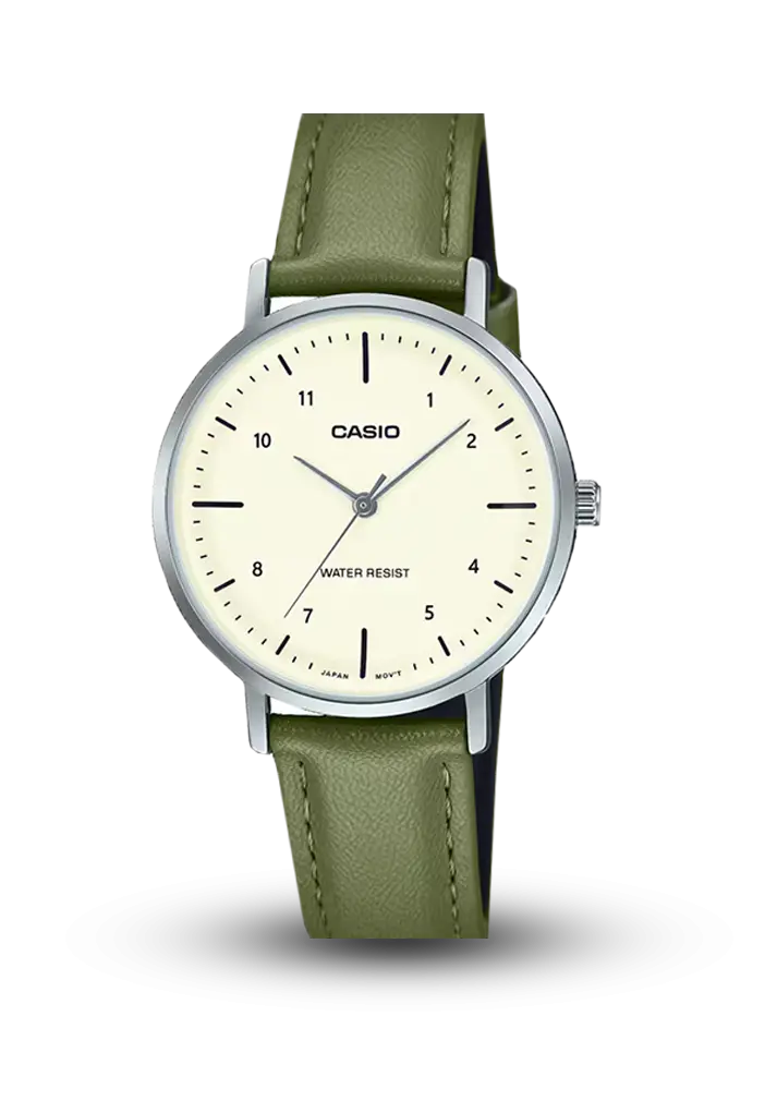 Açıq‑bej krem dial, dəri kəmər və nazik metal korpus birlikdə gündəlik, ofis tərzlərə rahat uyğunlaşan zərif görünüş yaradır. Yüngüllüyü və incəliyi sayəsində qolunuzda demək olar hiss olunmur; dəri kəmər gündəlik taxmaq üçün rahatdır.