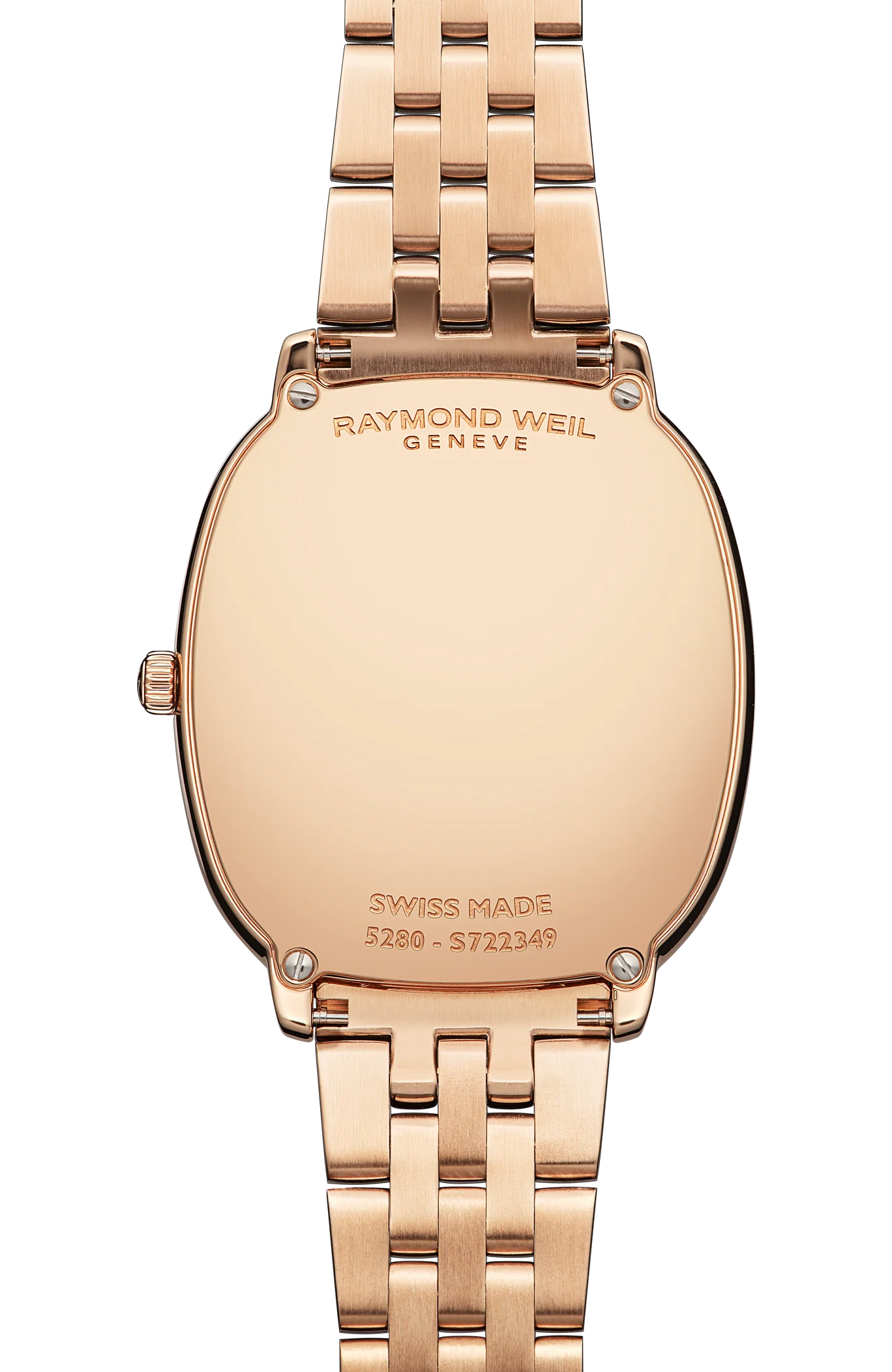 Raymond Weil Toccata Heritage - zamansız zərifliyin müasir təcəssümüdür. Raymond Weil-in bu modeli saatçılıq irsinə ehtiram olaraq yaradıb. Saat keçmişin əfsanəvi dizaynlarından ilhamlanmış zərif forması ilə fərqlənir. Günəş effekti ilə fırçalanmış gümüşü siferblat, üzərində bərkidilmiş indekslər, yumşaq künclü yastı korpus, çəhrayı qızıl PVD örtük ilə işlənmiş, üzərində 60 ədəd brilyantla (ümumi çəkisi 0.510 karat) bəzədilmiş saatı həm klassik, həm də müasir üslubun ideal sintezinə çevirir. Toccata Heritage - ənənəvi ustalıq, müasir incəlik və sadəliyin harmoniyasıdır.