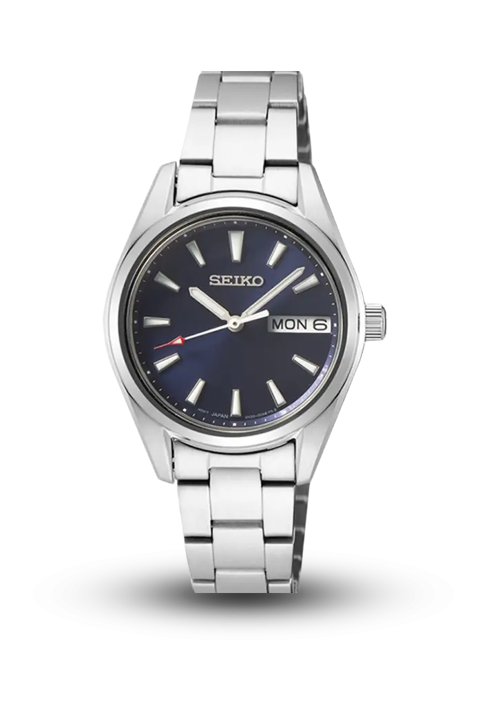 Seiko qadın saatı zərif və gündəlik istifadə üçün ideal dizayna malikdir. Tünd mavi siferblat, paslanmayan polad korpus və qolbağ ilə tamamlanır. Gün-tarix göstəricisi və yüksək oxunaqlıq bu modeli həm praktik, həm də eleqant seçimə çevirir. Gündəlik və klassik üsluba rahat uyğunlaşır.