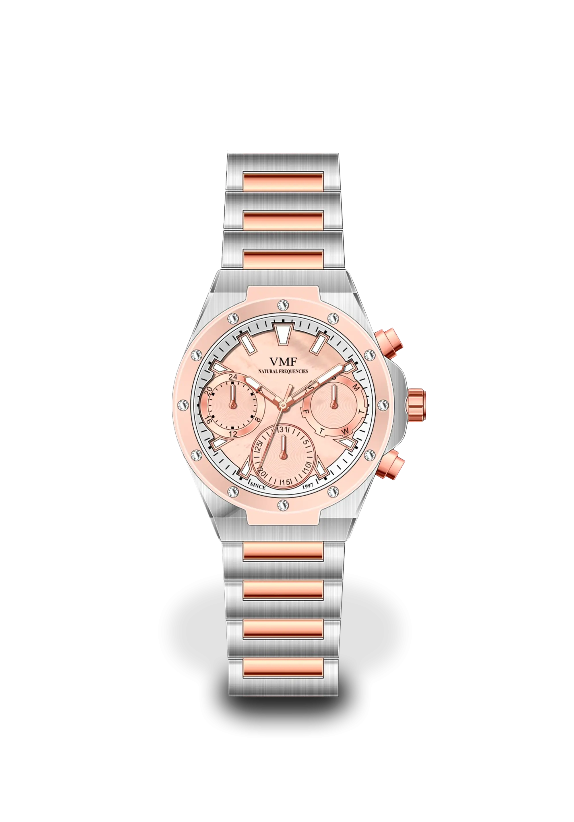 Çəhrayı siferblatlı və bezelli qadınlar üçün Ulduz modeli zamanın incəliklərini mükəmməl bir sənət əsərinə çevirir. Həftənin günü və ayın tarixi ilə həyatı daha da nizamlı hala gətirən bu kolleksiya, zərif Çexiya daşları ilə bəzədilmiş bezeli və sədəfdən hazırlanmış siferblatı ilə göz oxşayır. Sapfir şüşəsi, hər anın aydınlığına parıltı qatır, paslanmaz polad materialı isə illərin keçməsinə baxmayaraq, güc və şıklığı ilə diqqət çəkir. Bu saat, funksiyanın və incəliyin mükəmməl harmoniyasıdır – zamanın özünü əzəmətlə yaşamaq istəyənlər üçün əla seçimdir.