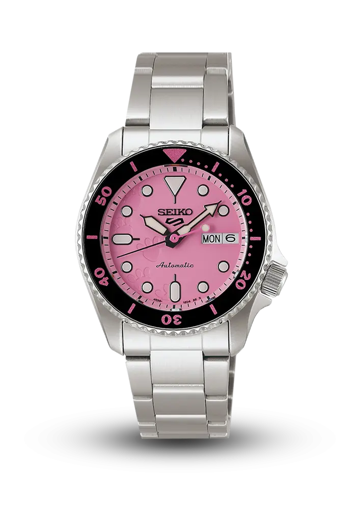 Yeni Seiko 5 Sports modeli Çəhrayı Panteranın cəsarətli və oynaq ruhunu özündə əks etdirir. Onun dizaynı gündəlik həyata rəng qatır və saatı taxanlara sevinc, əyləncə və həyəcan hissi yaşadır. Komplektə Çəhrayı Panteranın izləri təsvir edilmiş dəyişdirilə bilən neylon kəmər də daxildir.