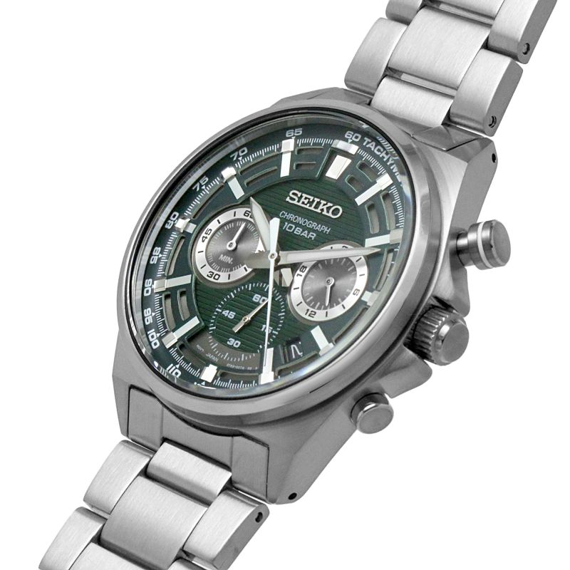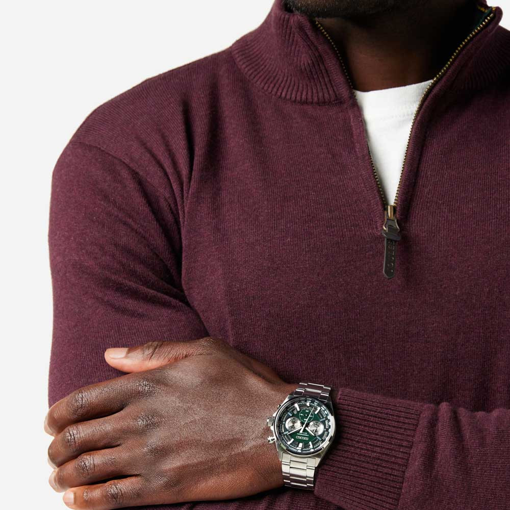 Seiko-nun bu xronoqraf modeli həm gündəlik, həm də klassik geyim tərzi üçün mükəmməl seçimdir. Yapon teksturalarından ilhamlanan tünd yaşıl siferblatı və davamlı polad korpusu ilə bu saat biləyinizdə xüsusi diqqət çəkəcək.