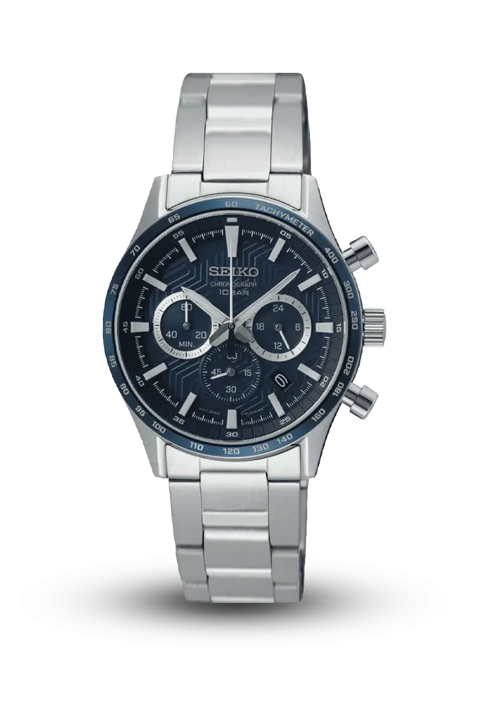 Seiko xronoqraf kişi saatı müasir dizaynı və yüksək funksionallığı ilə seçilir. Paslanmayan poladdan hazırlanmış 43 mm korpus, sapfir şüşə və taximetr çərçivə saatı həm gündəlik istifadə, həm də aktiv həyat tərzi üçün ideal edir. Xronoqraf funksiyası, 10 BAR suya davamlılıq və polad bilək kəməri bu modeli etibarlı və praktik seçimə çevirir. Zərif, oxunaqlı siferblat isə idman üslubuna premium toxunuş qatır.