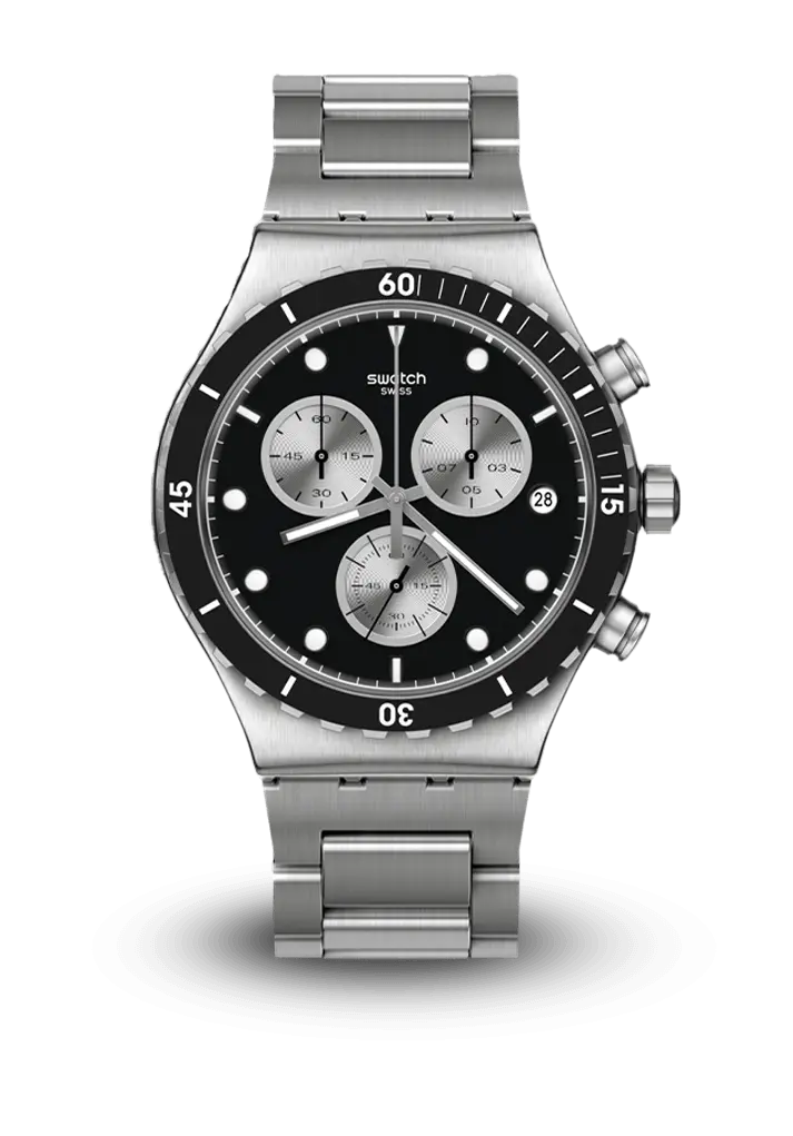 Qara mat siferblatlı, paslanmaz polad korpus və polad qolbaqlı, kronoqraf funksiyalı, tarix göstəricili, modern və zərif görünüşlü bir saatdır. Minimalist, sport dizaynı ilə gündəlik istifadəyə uyğundur.