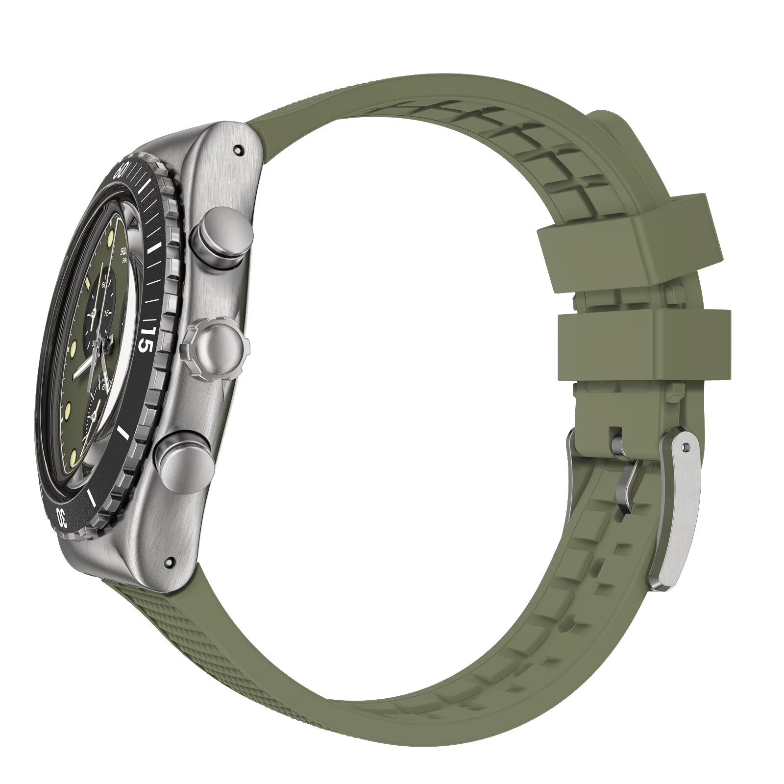 Təbiətin sakit yaşıl tonlarını daşıyan, haki siferblatlı, paslanmaz polad korpuslu, sərt və sadə zərifliyə sahib bir saatdır. Kronoqraf göstəriciləri və fosforlu indeksləri ilə idman ruhunu, rəngi ilə isə təbii və hərbi üslubu birləşdirir.