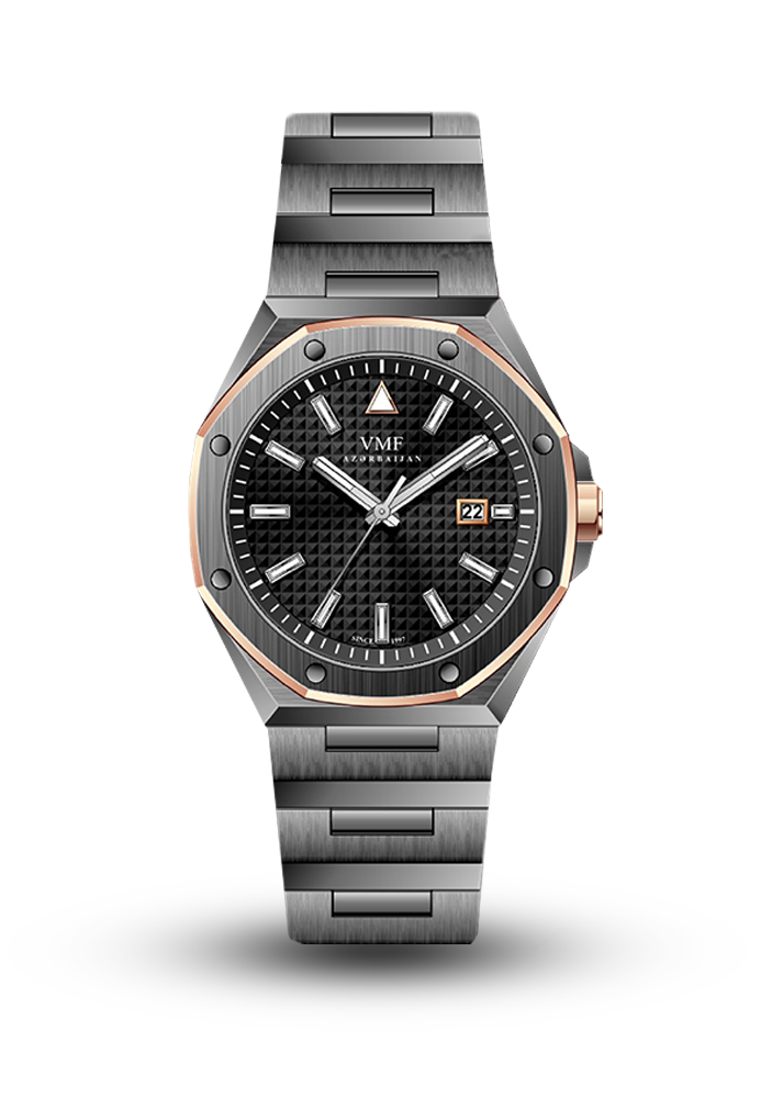 Saatın korpusu və 2 tərəfli qatlanan düyməli qolbağı 316L markalı paslanmaz poladdan hazırlanıb. Mexanizm ayın tarixini göstərən funksiya ilə təchiz edilib. Saatın siferblatına məşhur "Clous de Paris" gilyoş texnikası ilə naxış vurulub. Həmçinin bezilindəki 2 növ cila və rəng, bərkidici detallar saata unikal tərz bəxş edir. Saatın şüşəsi cızılmağa davamlı sapfirdən hazırlanıb.