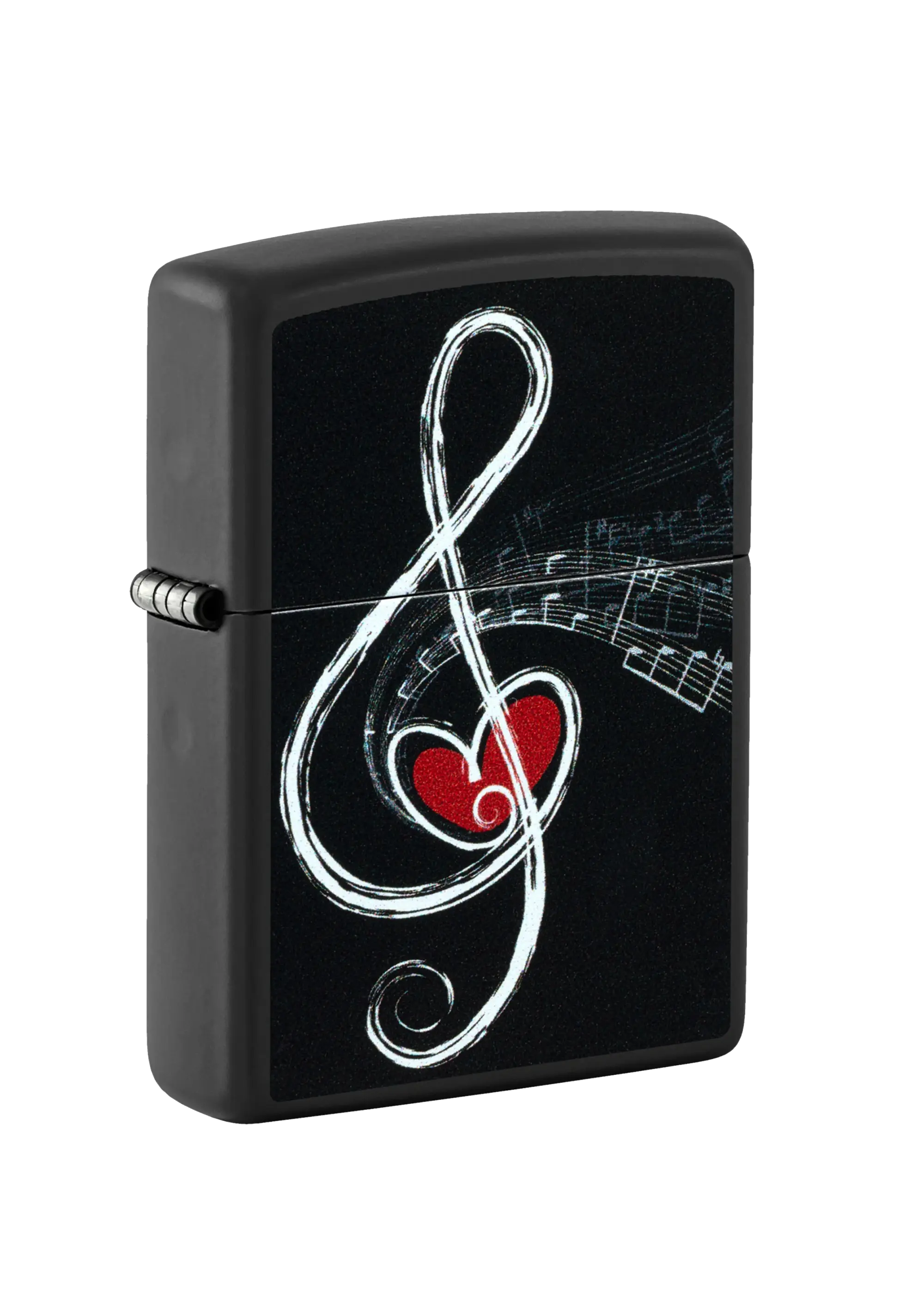 Musiqiyə olan sevginizi ifadə edən xüsusi dizaynlı Zippo alışqan. Qara mat korpus üzərində incə işlənmiş sol açarı not xətləri ilə birlikdə parlaq qırmızı ürək simvolu ilə tamamlanır. Rəngli “Color Image” texnologiyası dizayna canlı və diqqətçəkən görünüş verir.